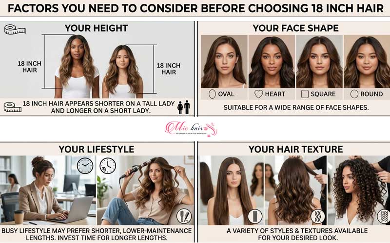 Your physical stature also dictates where the hair lands. For a petite individual, 18-inch extensions may reach the waist, whereas on a taller person, they may sit just below the shoulders.