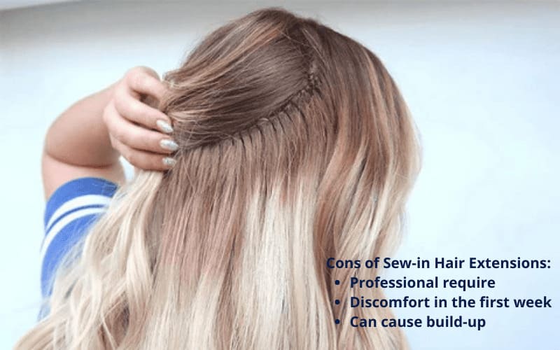 Unlike clip-in extensions and tape-in extensions, sew-ins need to be professionally installed. While this ensures a more secure and natural-looking outcome, it will increase the initial cost. The need for professional installation can be a limitation for some individuals because not everyone has easy access to a skilled hairdresser experienced in sew-in installations.