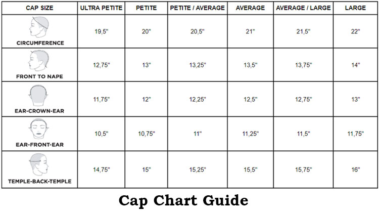 Once you have the measurement, compare it to the wig cap size chart. Sizes normally range from tiny to big, with some companies including ultra petite, petite, average petite, average, average large, and large.