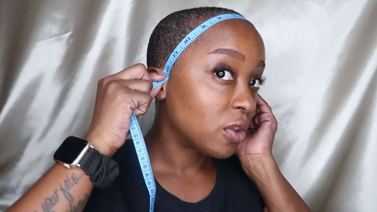 Begin by measuring the circumference of your head. Wrap the measuring tape around your head, beginning at your front hairline and moving over the tops of your ears, then back under to the base of your neck. Keep the tape level and snug, but not too tight.